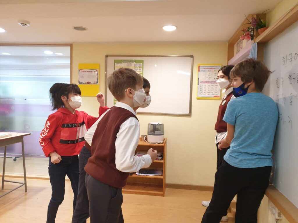 Кроме того, учитель корейского языка рассказала ребятам о популярных играх, в которые играют их корейские сверстники. И, конечно же, ученики AppleTreeSchool с большой радостью и энтузиазмом сыграли в эти игры.