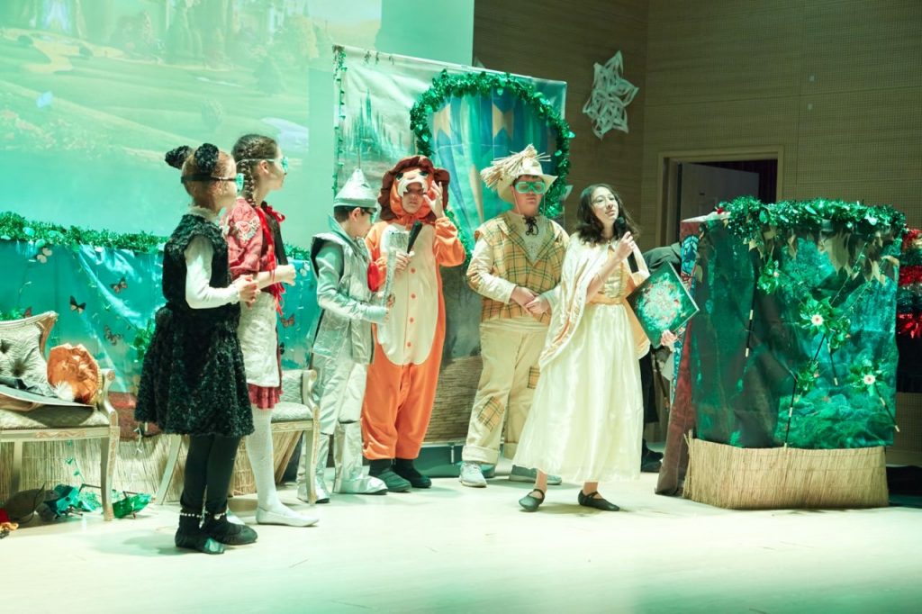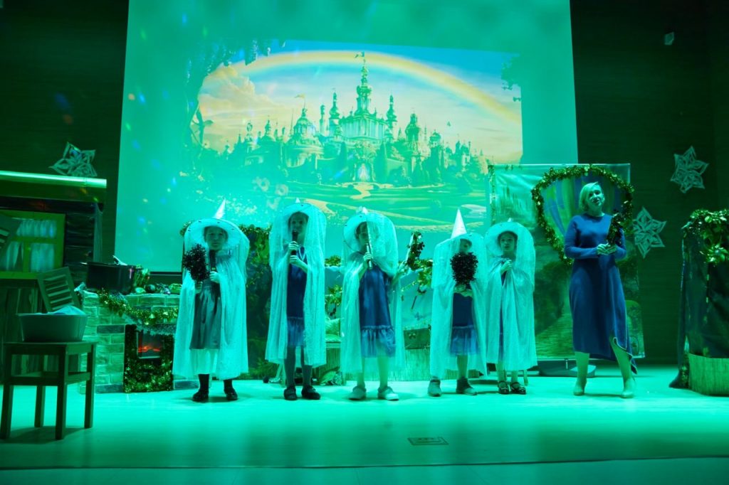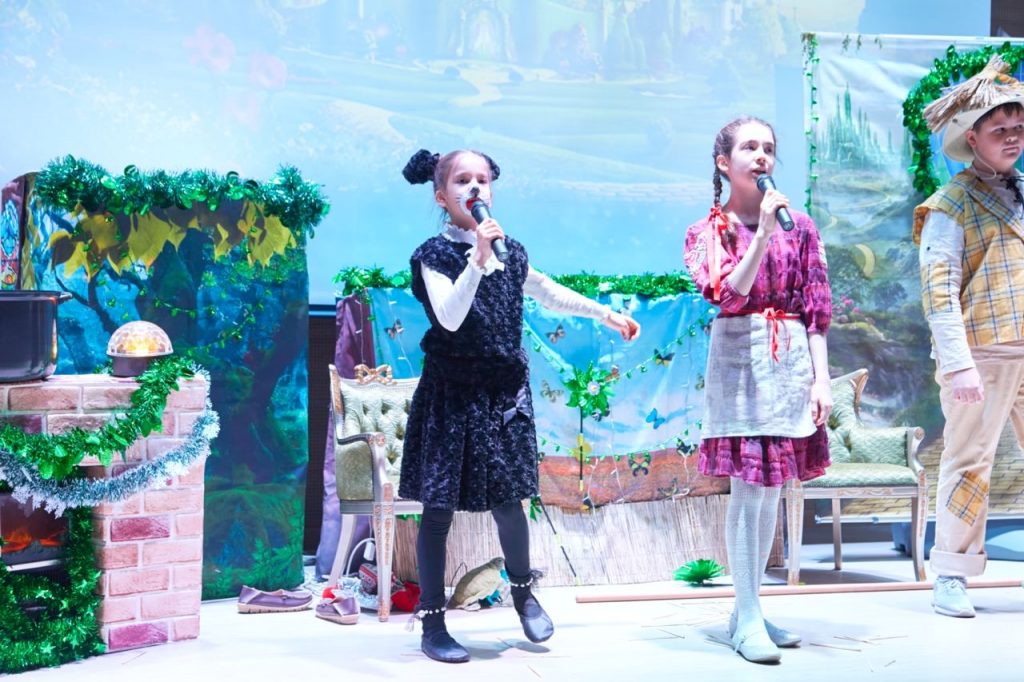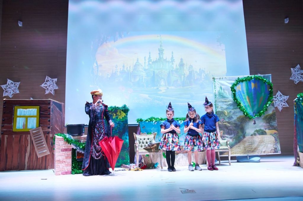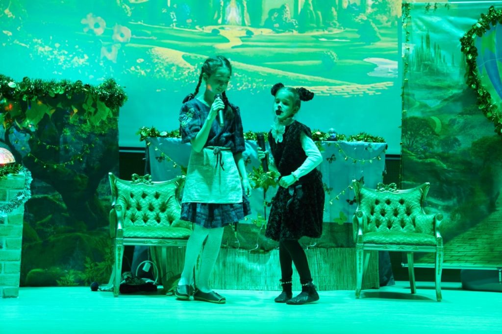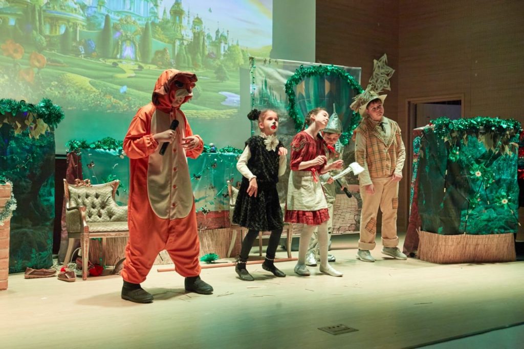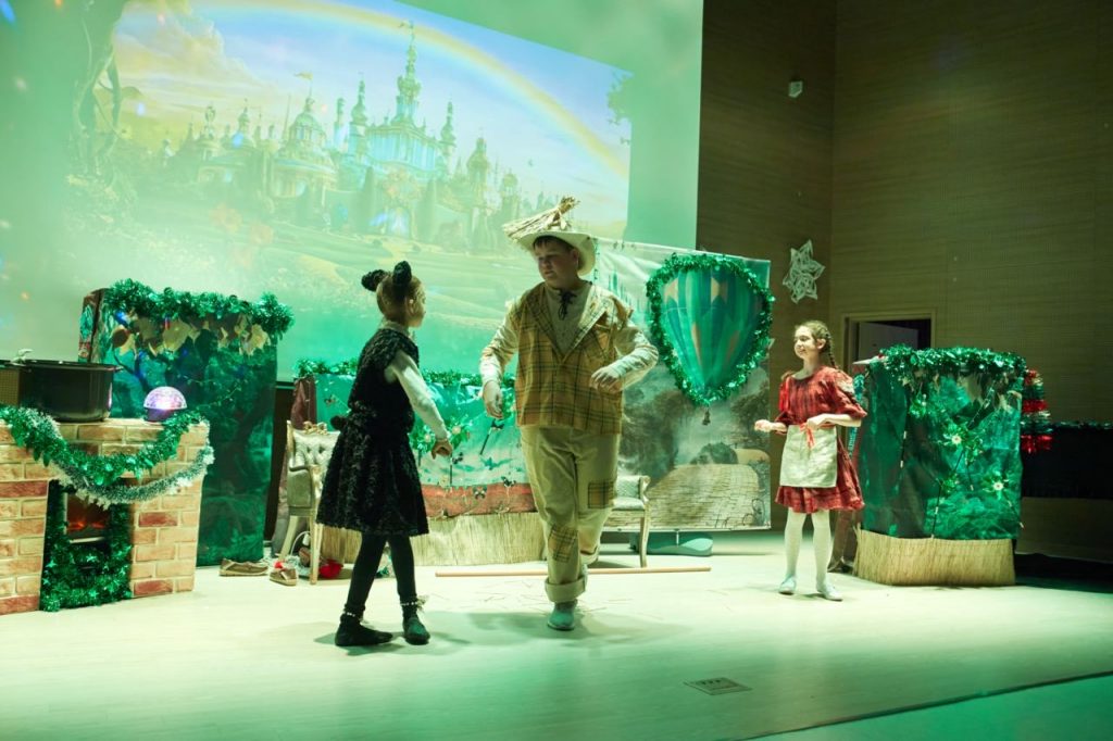 Праздничную программу открыл великолепный спектакль «Волшебник Изумрудного города» от театральной студии «AppleTree Star». Юные актеры представили вниманию зрителей удивииельное действие. На сцене знакомые и любимые с детства герои – Элли, Тотошка, Железный Дровосек, Страшила, Трусливый Лев и другие сказочные персонажи – поведали волшебную историю о победе добра над злом, настоящей дружбе, храбрости и отваге.