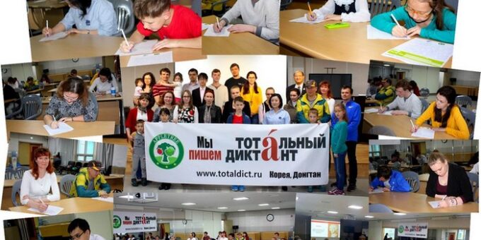 16 апреля 2016 года был осуществлен запуск образовательной акции «Тотальный диктан», в которой приняли участие русскоязычные дети и взрослые. Отрадно отметить, что наряду с русскоязычными представителями активное участие приняли студенты южнокорейских университетов, желающие определить уровень знаний и грамотности в сфере русского языка. Хочется отметить, что в сегодняшнем «Диктанте» участвовало более 20 человек, причем некоторые семьи пришли в полном составе. И это свидетельствует о важности и значимости проведенной акции.